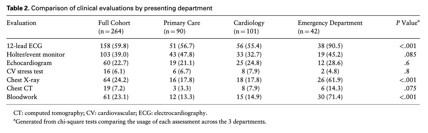 Among 264 included patients, clinical documentation for 41 (15.5%) explicitly noted an abnormal pulse alert. Preexisting atrial fibrillation was noted in 58 (22.0%). Most commonly performed testing included 12-lead echocardiography (n = 158; 59.8%), Holter monitor (n = 77; 29.2%), and chest x-ray (n = 64; 24.2%). A clinically actionable cardiovascular diagnosis of interest was established in only 30 (11.4%) patients, including 6 of 41 (15%) patients who received an explicit alert.