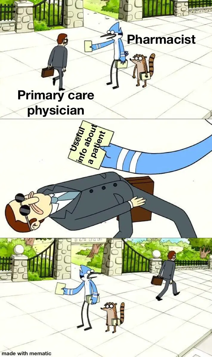 More than 90% of the population lives within 5 miles of a pharmacy. There are about 327K pharmacists in the US and 486K total primary care providers (internal medicine, family medicine, pediatrics, etc.). Medicare beneficiaries, who are more likely to be on a recurring medication, see the pharmacist twice as often as their primary care physician. Twice as often is the median; in more rural counties with primary care shortages, it can be more than 7x. This is for a host of reasons like physical accessibility of the stores, short wait times/no appointments needed to see a pharmacist, and it’s $free.99 to chat with them.