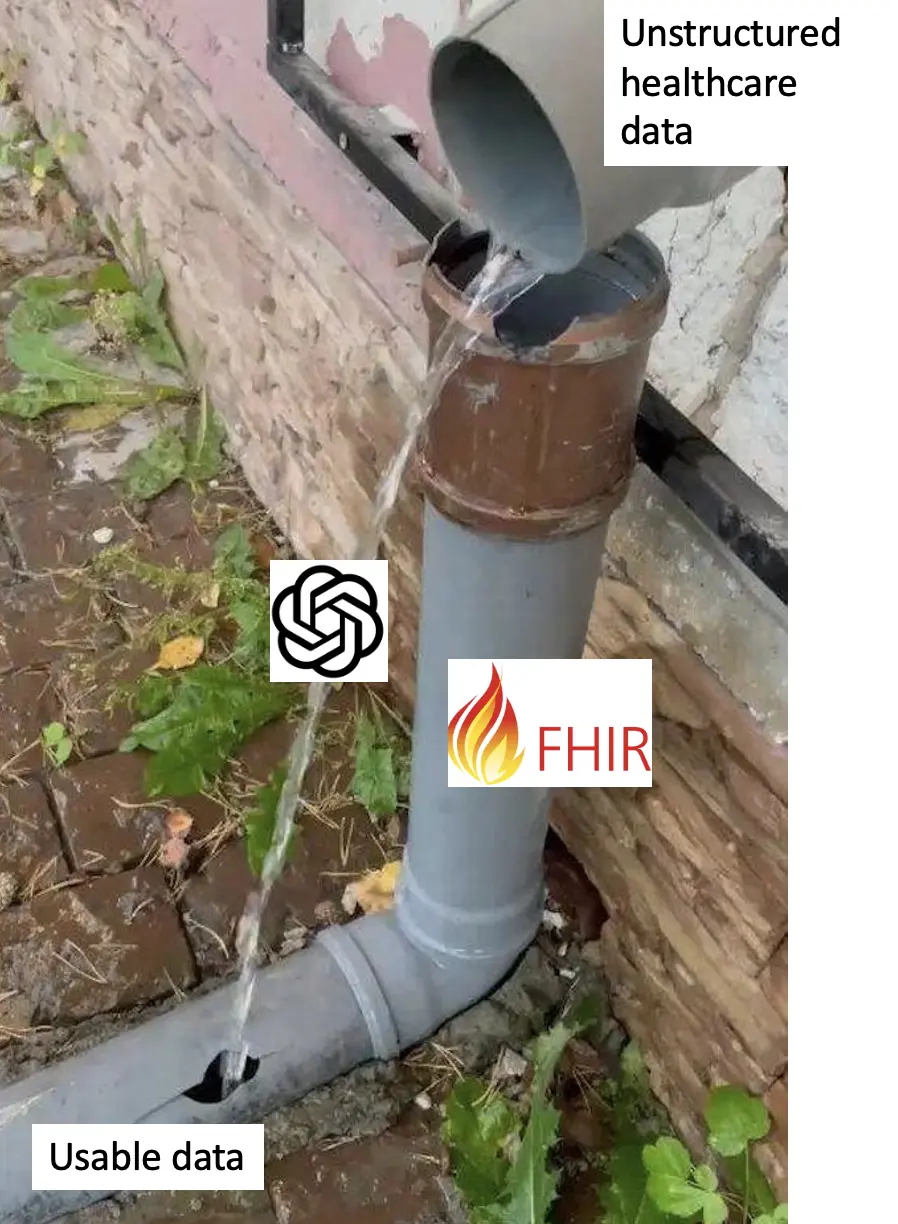 - We won’t see accelerated adoption of interoperability standards (e.g., FHIR, HL7). The combination of evolving data lakehouse architectures and powerful generative AI unlock unprecedented value in loosely structured and unstructured data. Increasingly, machines are much less discriminating between a finely structured FHIR document and a poorly scanned PDF—and the latter may be richer than the former.