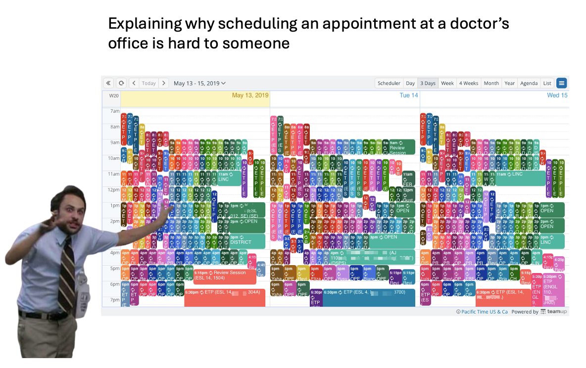 And then there’s a ton of miscellaneous things layered on top. What about patients who don’t show up? Or patients who want to pack a bunch of problems into one 15 minute visit and it goes over? Or a patient has an urgent issue and needs to be squeezed in the same-day? Or when a patient schedules an ultrasound at an OB-Gyn AND follow-up appointment with that OB afterwards - there’s logic that two appointments need to be scheduled, with 2 different and specific providers, in a specific order.