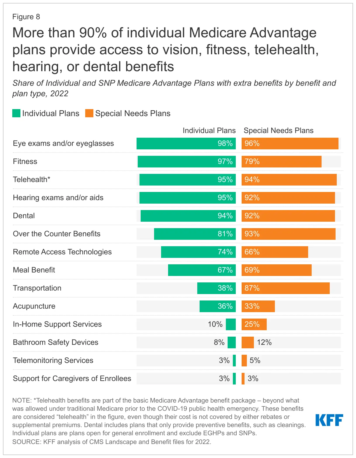 [NK note: Dental Benefits are also one of the top extra benefits offered in MA plans, and one that actually gets used frequently]
