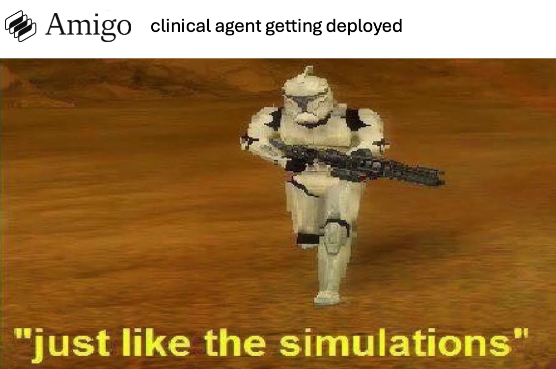 The Amigo CEO called this the “AI residency program”. AI can pass the MD licensing exams with flying colors, but the doctors learn the real-world implementation when they become residents at a hospital or clinic. The only way that happens is by seeing things a million times and learning from mistakes, which an agent does in your practice-specific simulated environment.