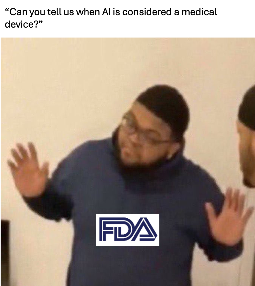 Regulatory Uncertainty - There's ongoing discussion about whether patient-facing AI doing clinical tasks might end up in the software-as-a-medical-device (SaMD) category. The FDA hasn't been super clear here, but in general, this administration seems to be focused on getting AI into clinical practice as quickly as possible.