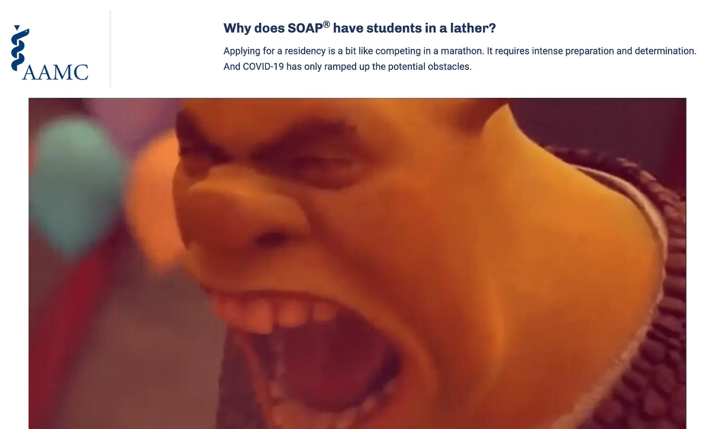 On Monday, some students unfortunately received an email that they did not match to any program. At this point, students would “scramble” and start ad-hoc calling and looking for programs with unfilled spots. In 2012 this was turned into a more formalized process called Supplemental Offer and Acceptance Program (SOAP) so that the organizing parties could say cutesy stuff like this to people who just had a bomb dropped on them.