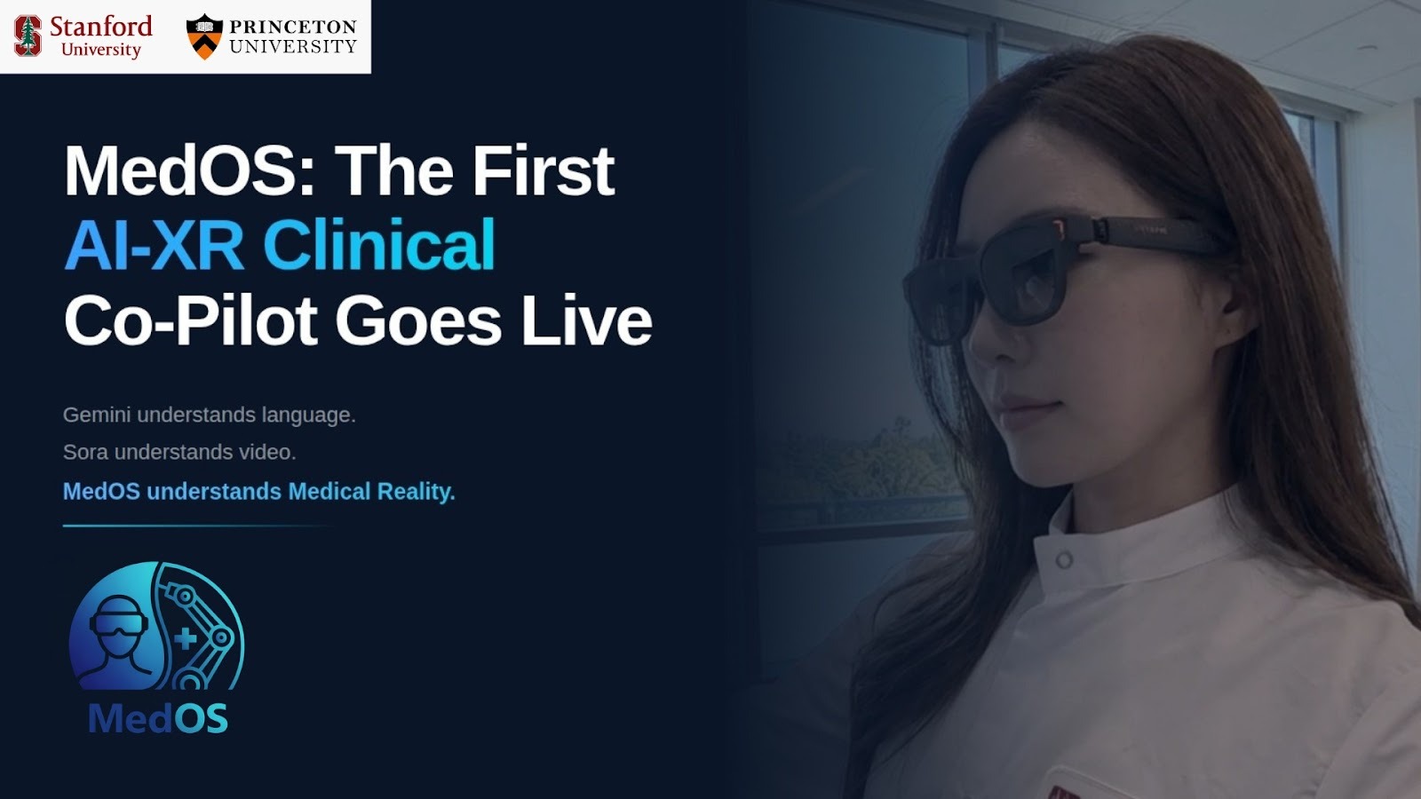MedOS is a next-generation AI-XR-Cobot medical system developed by the Stanford–Princeton AI Coscientist Team. Now featured at NVIDIA GTC 2026 and deployed at Stanford, it acts as a real-time clinical co-pilot — combining multi-agent AI, XR smart glasses, and intelligent robotics to assist doctors in live hospital workflows. With expanded medical coverage and near real-time response, MedOS brings AI from the lab into real-world medicine. Explore the future of clinical AI.