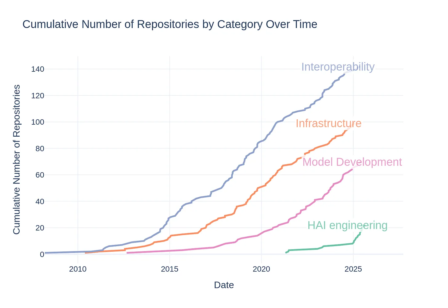 Prepackaged scripts for data analytics - Another flavor of open source infrastructure is the "just give me a script that does the thing" category. People are basically writing common scripts that everyone needs to extract data, transform it in different ways, and run analyses on it. PhysioToolkit is an open source software library with tools for processing physiological signals. Mimilabs ingests thousands of public healthcare datasets from CMS, CDC, FDA, and other government sources, and makes them queryable. Their data engineering scripts are all open source. A lot of data consultants/founders/unemployed open source many of their own scripts to use on top of common datasets.