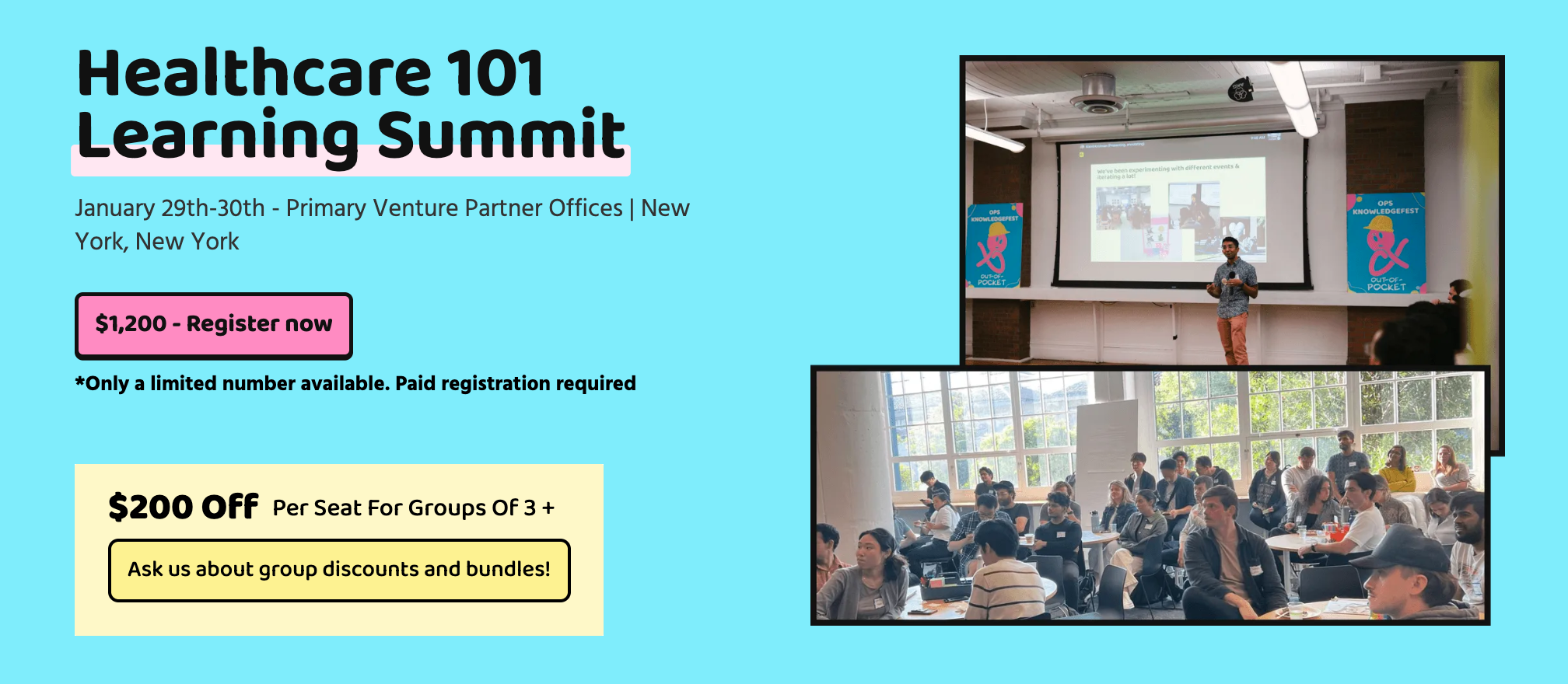 We’ll do group rates, custom workshops, etc. - email sales@outofpocket.health and we’ll send you details.