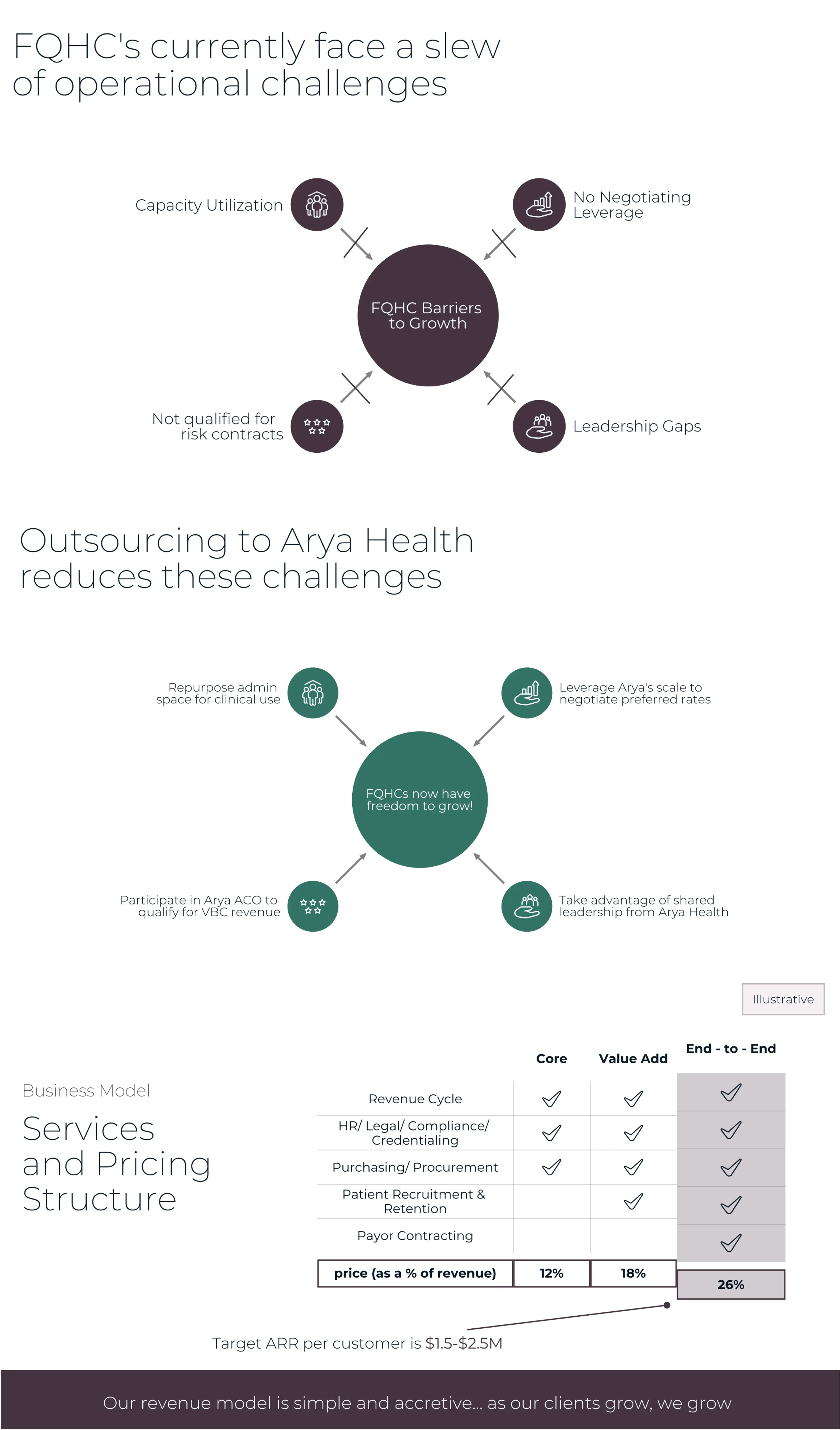 Below is an example of a clear pain point (federally qualified centers struggle to operate in value-based care), solution (we help with that) and business model (we charge a % of revenue). This company pivoted completely, and that’s okay! It showed a clear hypothesis.
