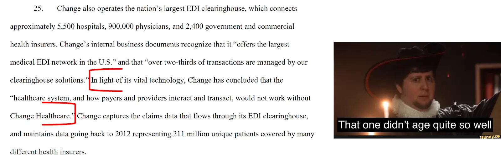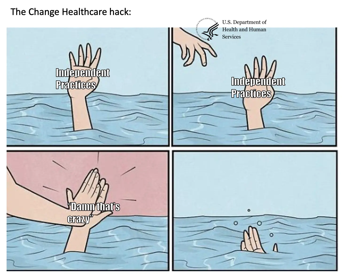 - “Change Healthcare hasn’t resolved it because the hackers required a prior auth guffaw guffaw”