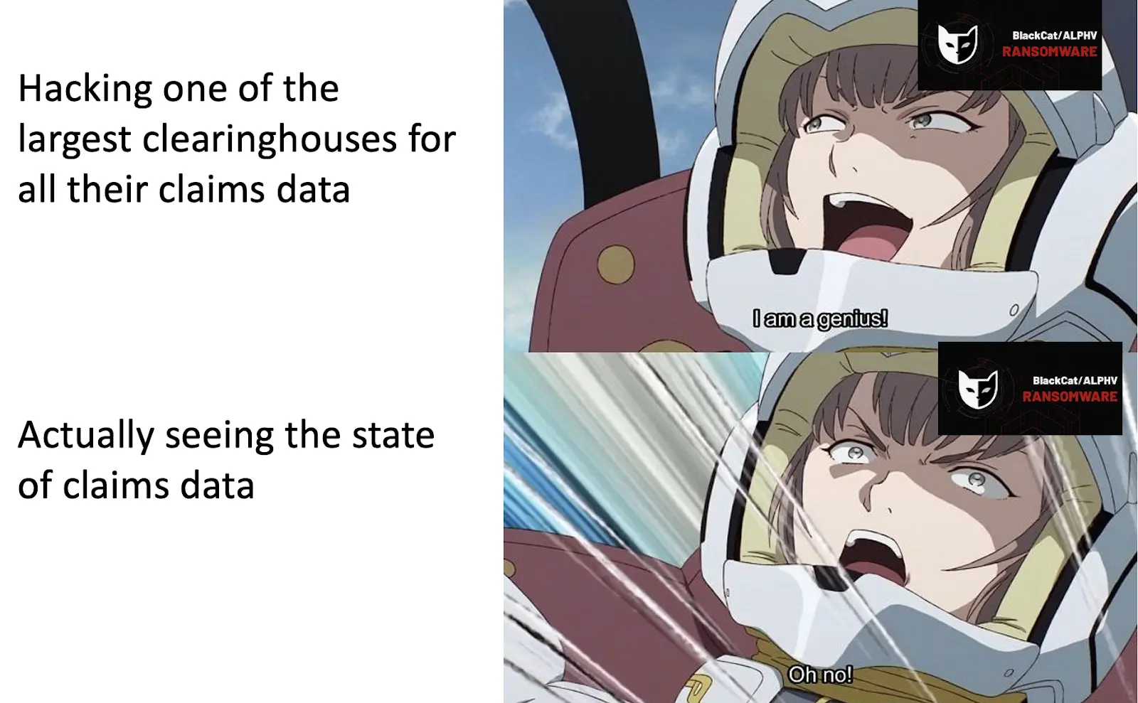 And as you can imagine, paying the ransomware still has not resolved the issue. Because…guess what…they paid the criminal group BlackCat and BlackCat didn’t pay the subcontracted hacker that actually found the exploit! That hacker actually holds all of the data! I cannot believe the criminals did not keep their word!!! There is a very funny joke about subcapitation that I cannot think about right now cause I’m just laughing at the absurdity that they paid the wrong person.