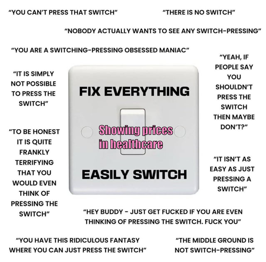 [NK note: Honestly I think 80% of sins in US healthcare could be solved by just showing prices for things. And I’m tired of pretending that’s not the case.]