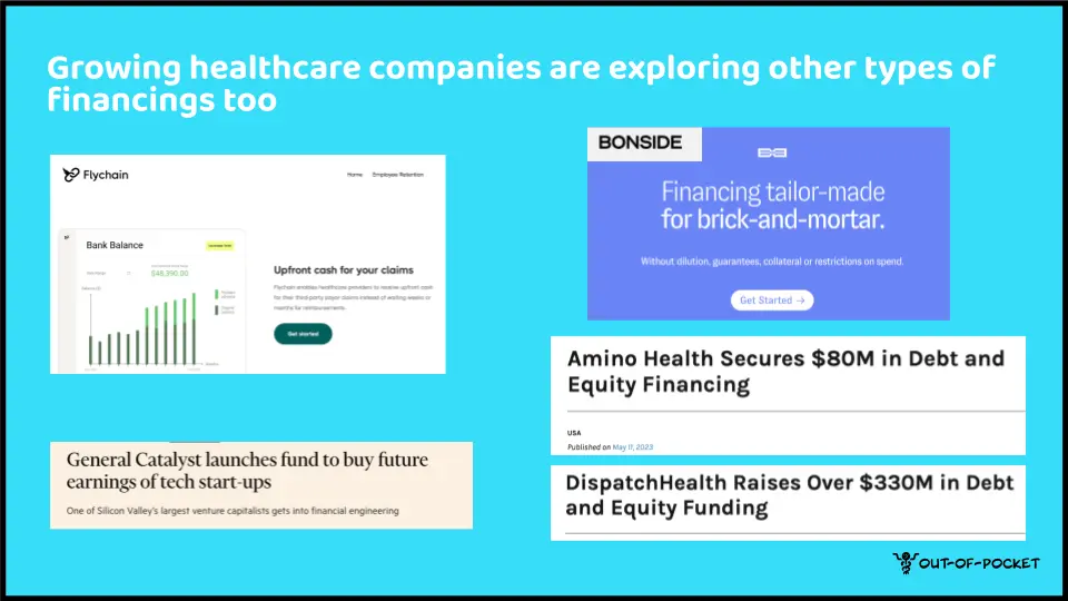 - More companies are starting without VC funding and quickly optimizing for cash/profitability. A lot of new financing options seem to be popping up to help healthcare companies grow and they’re tied closer to revenue. Many founders have never seen the sign-in portal for their accounting software and are going through the forgot password flow.