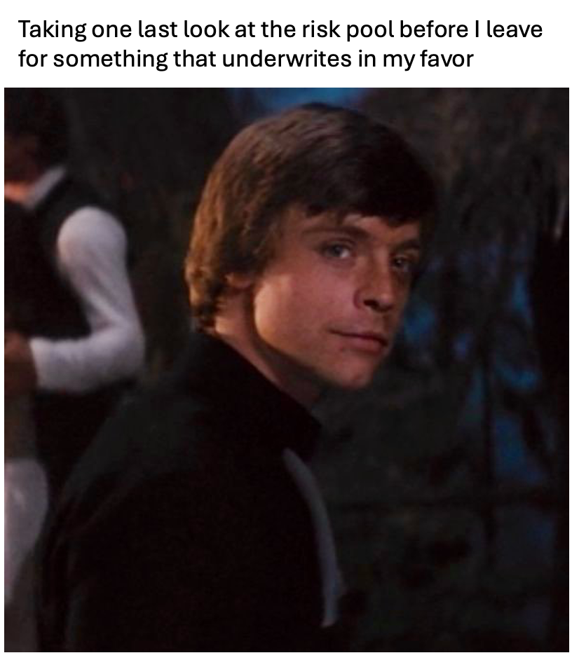 There’s a longer conversation to be had about whether underwriting arbitrage is making the risk pool worse, and we’ve talked about this in previous posts. The answer is probably yes, but solving that requires a total rethink of how we allow businesses to offer coverage.