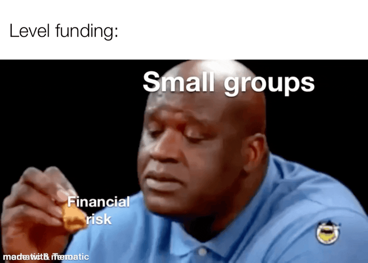 The ideological question on small group insurance - Level-funding is not legal in some states. The reason is because it enables employers with “healthier” pools to get underwritten at a lower rate, and then they exit the regular small group insurance market. If all the healthy small groups leave, that means the remaining small employers will have more costly employees, and it’ll become untenably expensive.